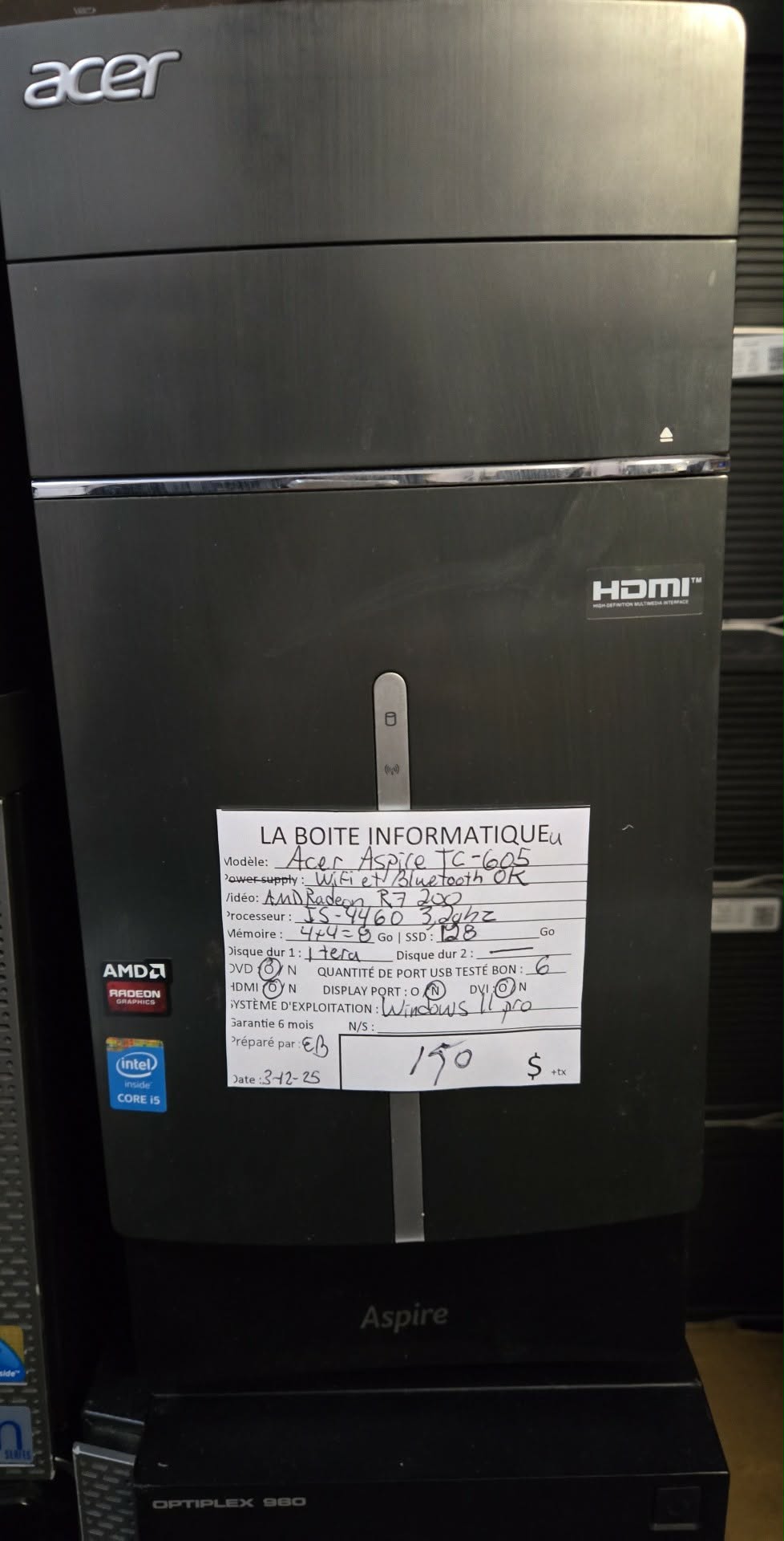 💻 PC DE BUREAU ACER ASPIRE TC-605 – i5 • SSD + HDD • Windows 11
